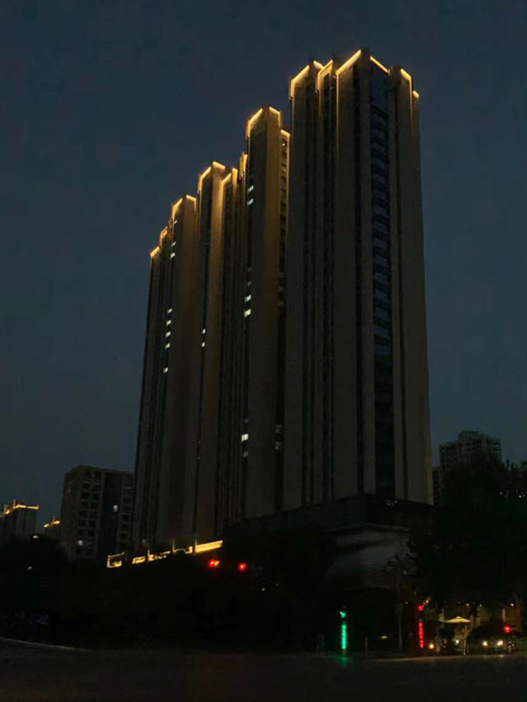 簡介—— 蔚來熙語項目位于航天城航天中路與神舟二路十字東南角,項目占地15畝,由2棟公寓及其商業(yè)生活配套組成,Art deco的建筑風(fēng)格。我司承擔(dān)外立面亮化工程,對樓體頂部打亮及樓體線條的勾勒,做輪廓亮化,突出整體建筑,美化樓體。